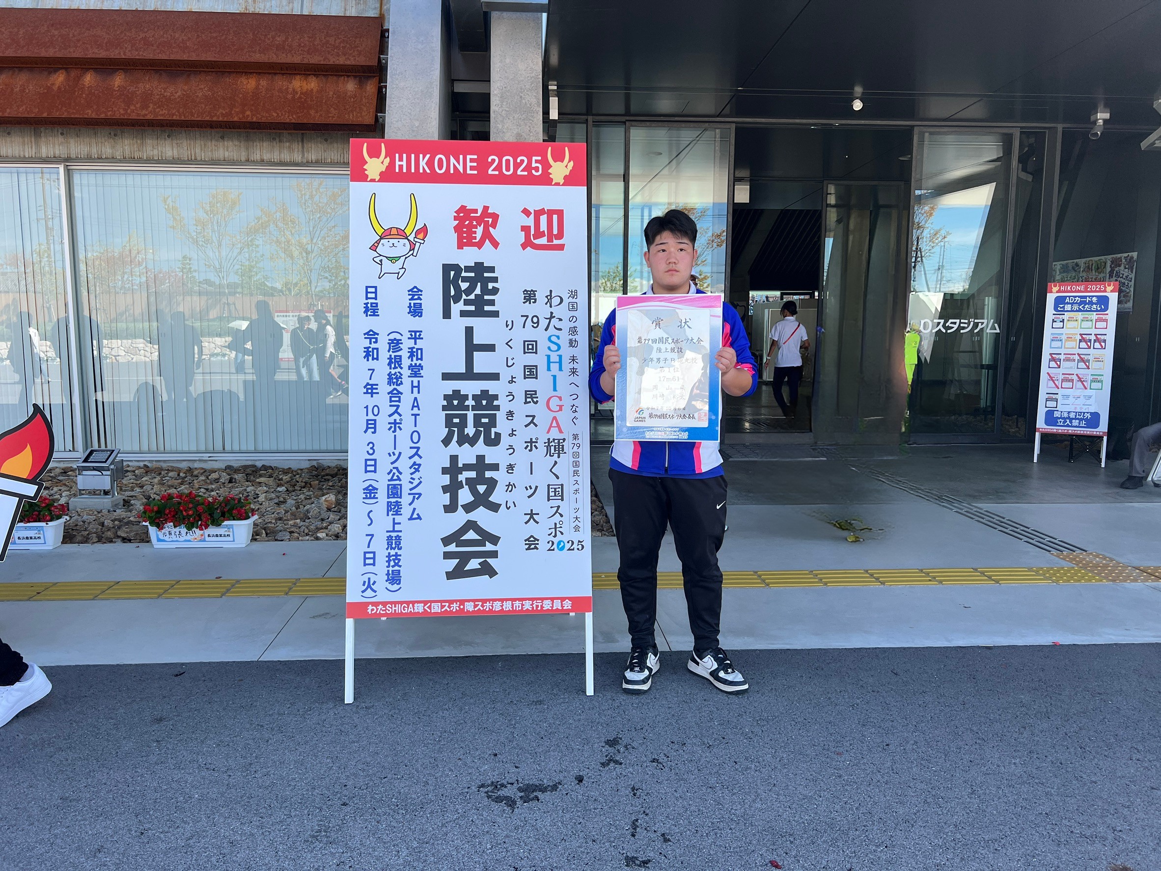 陸上競技部 令和7年度第79回滋賀国民スポーツ大会(わたSHIGA輝く国スポ2025)陸上競技砲丸投げ 少年男子B 優勝‼ 令和7年度第79回滋賀国民スポーツ大会(わたSHIGA輝く国スポ2025) 陸上競技投てき競技砲丸投げ少年男子Bに出場している川﨑裕太さんが17m61の記録をマークし優勝しました 応援ありがとうございました