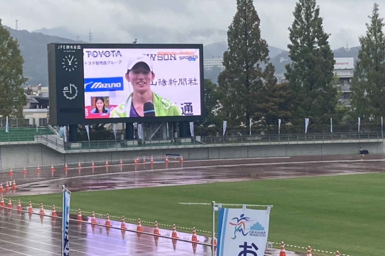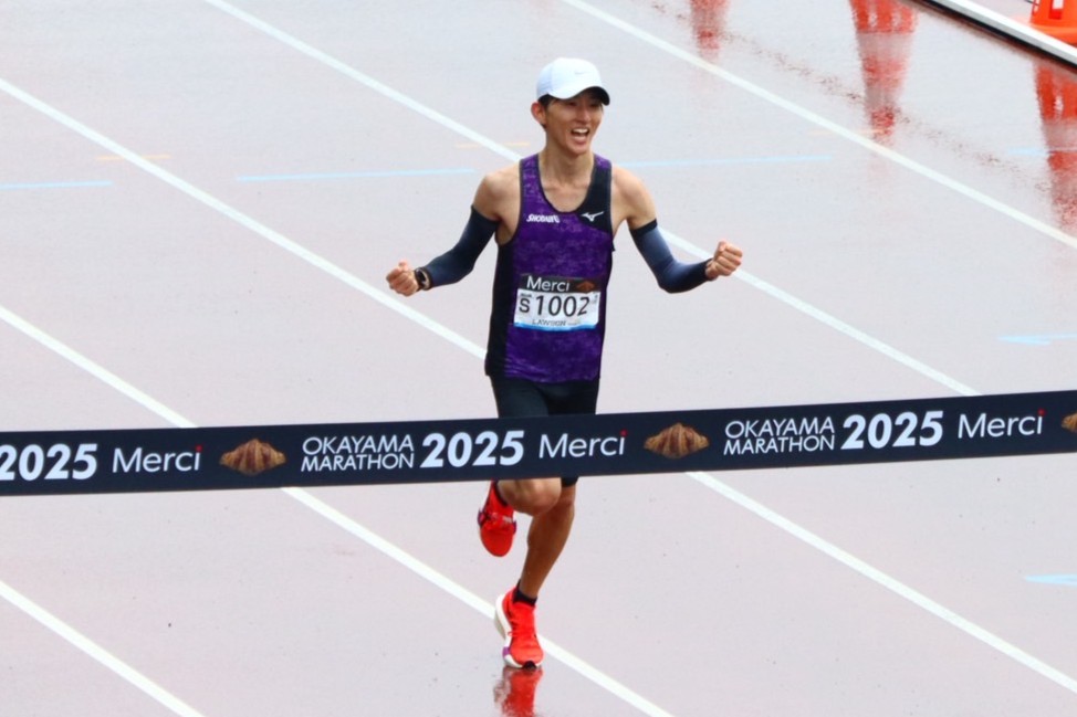 陸上競技部卒業生 OKAYAMA MARATHON 2025 豊田紘大(岡山商大附AC) 大会新記録で2度目の優勝 本校事務職員の豊田紘大(陸上競技部コーチ)が、2025おかやまマラソンで優勝しました。 10㎞付近から一人抜け出し、最後まで独走。2023年大会に続き2度目の優勝をすることができました。 多くの皆様から応援を頂きありがとうございました。